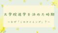 こんにちは。産婦人科クリニックでフルタイム勤務をしながら、子育てと大学院進学を両立しようと決めた助産師たまじです。大学院を受験することを決めたのは10月。そこから、後期試験の募集締め切りまで約2か月。試験までは、わずか3か月。いわゆる短期決...
