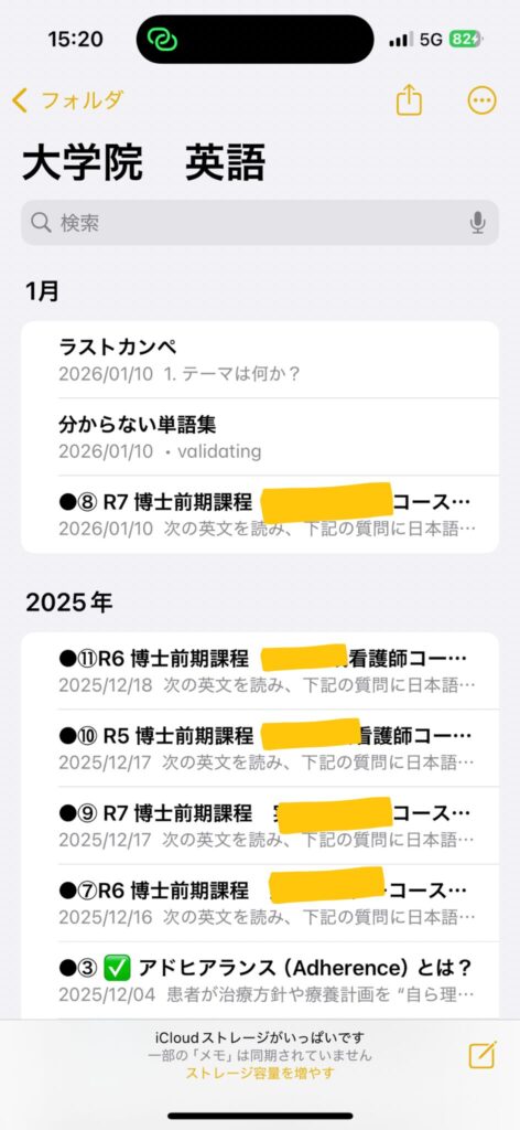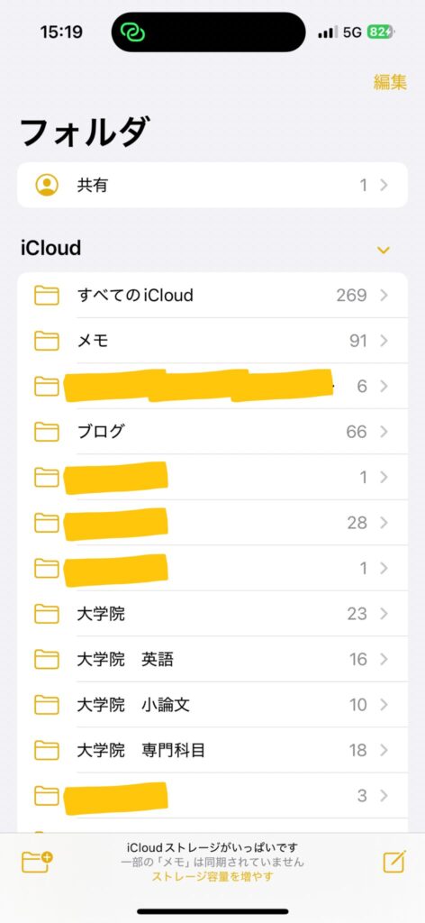 iPhoneの「メモ」アプリ